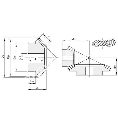 Коническая шестерня косозубая для конической косозубой пары, i=3, M=3, Z1=16, Z2=48Характеристики