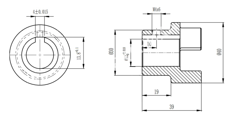 Полумуфта GE 19-24 тип A, с готовым отверстием d=12 мм, шпон паз 4х1,8мм+винт М4, СТАЛЬ, EMT