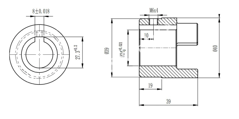 Полумуфта GE 19-24 тип B, с готовым отверстием d=24 мм, шпон паз 8х3,3мм+винт М6, СТАЛЬ, EMT