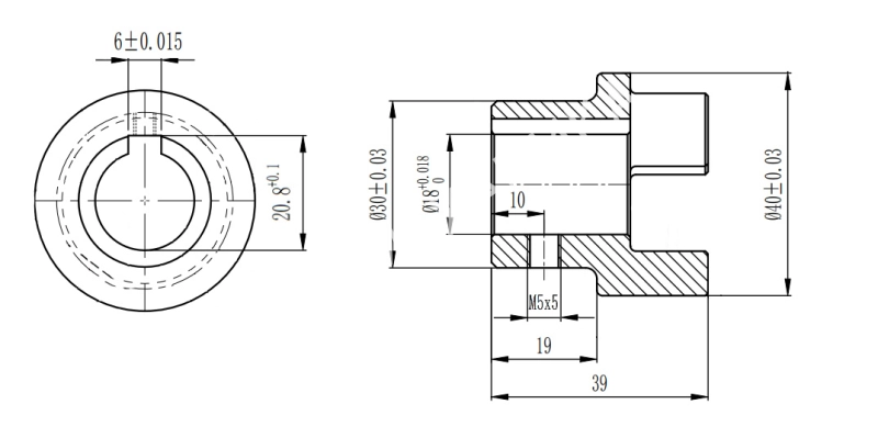 Полумуфта GE 19-24 тип A, с готовым отверстием d=18 мм, шпон паз 6х2,8мм+винт М5, СТАЛЬ, EMT