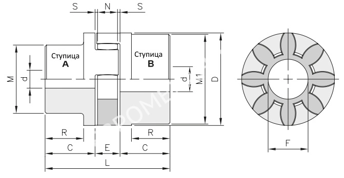 Полумуфта под расточку GEB 65-75 тип B, dmax=75 мм (SGMB075), EMT