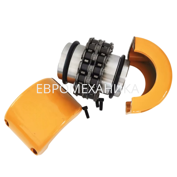 Муфта цепная KC16022 производства EMT — это стандартизированный элемент привода, предназначенный для соединения соосных валов и передачи крутящего момента в условиях умеренных нагрузок. Конструкция муфты включает две стальные полумуфты со звездочками, роликовую цепь и разъемный защитный кожух, что обеспечивает эффективную компенсацию радиальных, угловых и осевых смещений валов. Ключевыми преимуществами модели KC16022 являются высокая ремонтопригодность, возможность быстрой замены цепи без демонтажа узла, а также защита от внешних загрязнений. Муфта применяется в общем машиностроении для приводов конвейерного оборудования, вентиляционных систем, насосов и легких станков, где требуется надежное и простое в обслуживании соединение.Характеристики