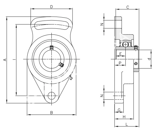 Подшипниковые узлы с самоустанавливающимся подшипником UC, со стопорным винтом и , корпус типа FA. Материал корпуса - ЧугунХарактеристики