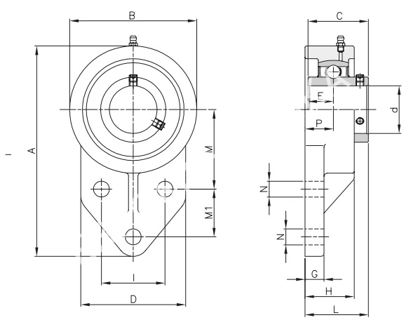 Подшипниковые узлы с самоустанавливающимся подшипником UC, со стопорным винтом и , корпус типа FB. С тремя крепежными отверстиями.Характеристики