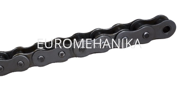 Цепь роликовая 12A-1 (60-1, ПР-19,05-31,8), EMT, однорядная, американского стандарта (DIN 8188 – ANSI B29.1 “ASA”), с шагом цепи 19,05 мм, изготовлена из высопрочной закаленной стали. Имеет ширину ролика 12,57 мм, диаметр ролика 11,91 мм. Цепь поставляется в упаковке отрезками по 5 м.Характеристики