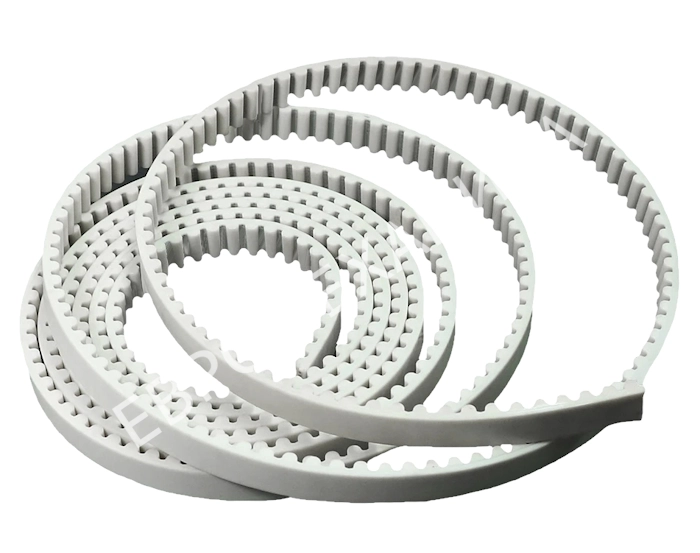 Ремень зубчатый открытого типа HTD 5M 09, ЕМТ, состоит из белого термопластичного полиуретана. Ремни имеют высокую устойчивость к истиранию и износу зубов, низкий коэффициент трения, высокую гибкость, озоно- и термостойкость (-25 °C / +80 °C). Поставляются в разомкнутом виде. Длина отрезка 50 метров, могут быть сварены в бесконечные ленты. По запросу возможно нанесение покрытий для снижения трения и шума при эксплуатации.Характеристики
