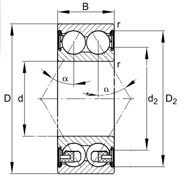 Шариковые радиально-упорные двухрядные подшипники воспринимают высокие радиальные и осевые нагрузки в двух направлениях.Характеристики