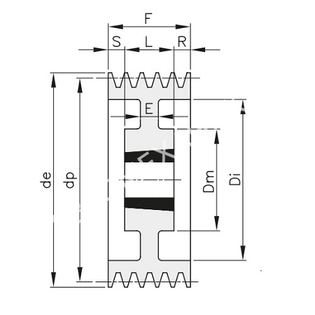 Шкив для клиновых ремней нормального/узкого ( B / SPB ) профиля предназначены для работы в силовых приводах промышленного оборудования.Характеристики