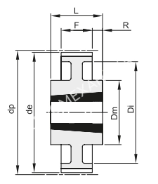 Шкив зубчатый под втулку тапербуш, для ремней с профилем зуба L 0,375'' (9,525mm) и шириной ремня 050 (12,7mm) с числом зубьев шкива Z= 60. Дополнительно комплектуются втулкой для быстрого монтажа и демонтажа. Материал шкива GG. Вес детали 2,2 кг. Торговая марка EMT.Характеристики