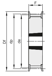 Наружный диаметр по фланцам Df