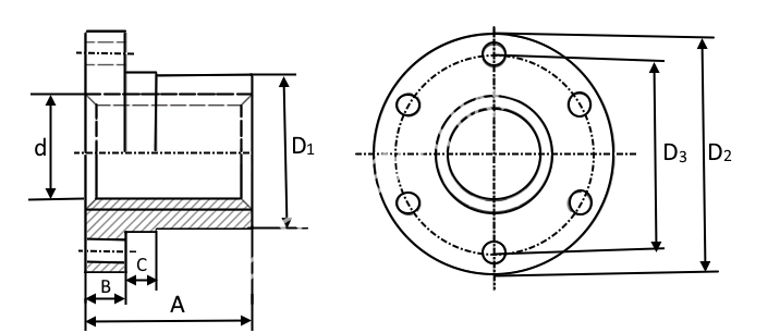 Гайка трапецеидальная полиамидная (POM) PFA 20х4 с фланцем (правая резьба), EMT